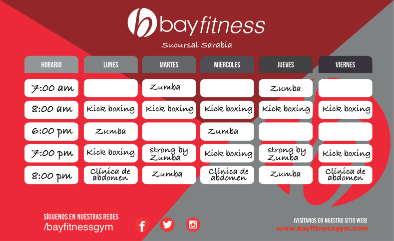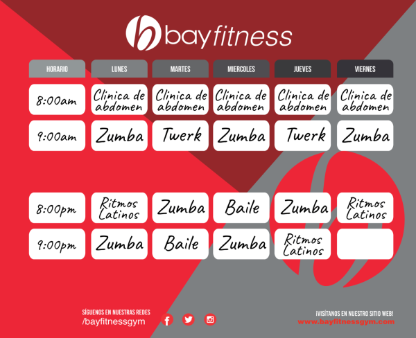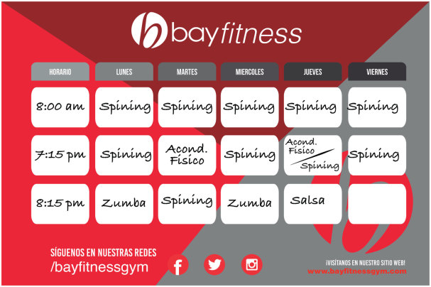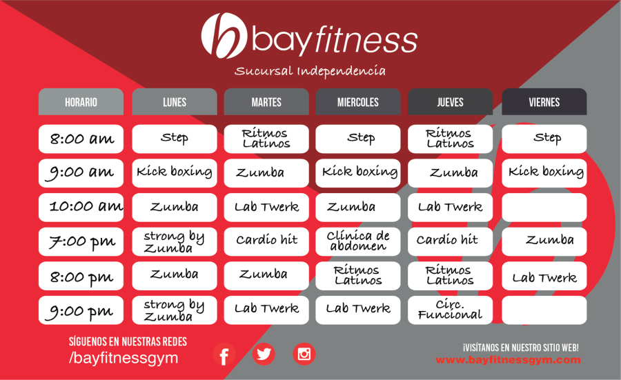 Bay Fitness pone a tu disposición las siguientes Clases en nuestras 4 Sucursales: